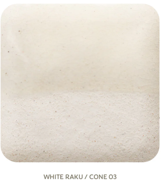 ดิน White Raku เป็นดินรากุสีขาวที่โดดเด่นด้วยการผสมผสานของส่วนผสมอย่างลงตัว ดินชนิดนี้มีส่วนผสมของ กรอก ละเอียดในปริมาณสูง ทำให้มีความแข็งแรงและทนทานต่อการเปลี่ยนแปลงอุณหภูมิอย่างรวดเร็ว แต่ยังคงรักษาคุณสมบัติความเหนียวไว้ได้เป็นอย่างดีด้วยคุณสมบัติดังกล่าว ทำให้เป็นดินที่เหมาะสำหรับงานปั้นเกือบทุกประเภท และมีช่วงอุณหภูมิการเผาที่กว้างมาก